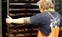 Nils Ekvall är kursledare och går igenom hantering från slakt till färdig produkt. Det blir rökning och förädling av fiskfärs. Råvaran som används är regnbågslax och gädda. Kursen innehåller både teori och praktik. Plats: Tiraholms Fisk, Unnaryd, Halland.